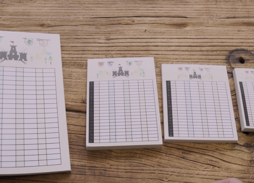 A paper pad may serve as a simple scorepad at game’s end or it could be the centerpiece of your revolutionary new roll and write game. Either way, a well-designed paper pad can enhance your players’ experience and serve as a reminder of that special game. Paper pads can come in a variety of sizes, be printed on one or both sides, and come in full color or black and white. Don’t forget the pencil!